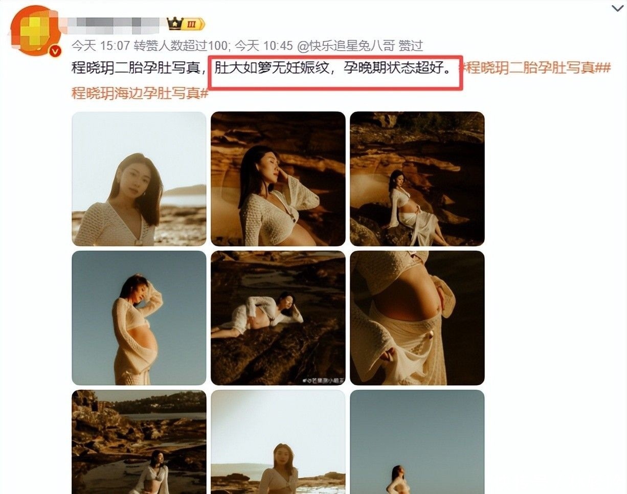 35岁的程晓玥近日凭借一组海边孕照刷屏全网——她挺着高高隆起的孕肚立于浪花之畔,肤色透亮、腹部紧实平滑,别说明显妊娠纹,连细微褶皱都难觅踪影。
