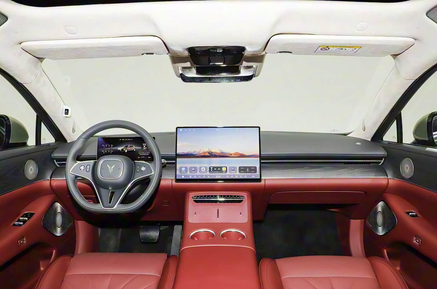 进入到车内,迎面而来的是岚图追光L极简风格的内饰设计,不过由于新车在内饰用料方面的表现比较突出,内饰用到了大面积皮革材质的包裹,所以内饰的档次感还是呈现得比较不错的;此外,新车配备了两块大尺寸的屏幕,且有着鸿蒙驾驶座舱的加持,所以车厢内的科技感是呈现得很足的。配置方面,例如前后泊车雷达、360度全景影像、L2级辅助驾驶、全车电吸门、电动后尾门、全车多层隔音玻璃、方向盘加热、自动防眩目后视镜、50W手机无线充电、电调座椅、座椅加热、座椅通风、座椅按摩、车载冰箱等配置在岚图追光L上均有出现。